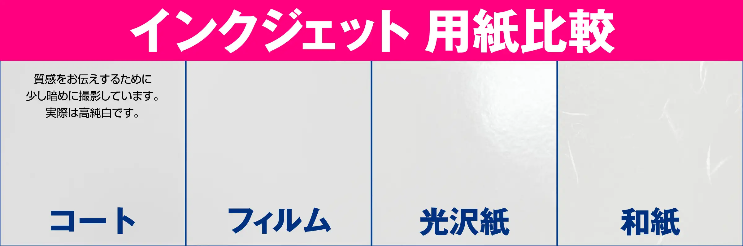 髙白色、つや消し、スーパーファインタイプです。白色度が高くカラー画像を鮮明に表現します。